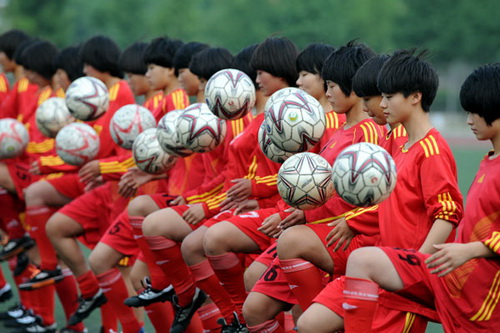 Les membres de l'équipe féminine de football d'une école secondaire à Linyi, la province du Shandong, prenant part à une session de formation.(Fang Dehua/China Daily)