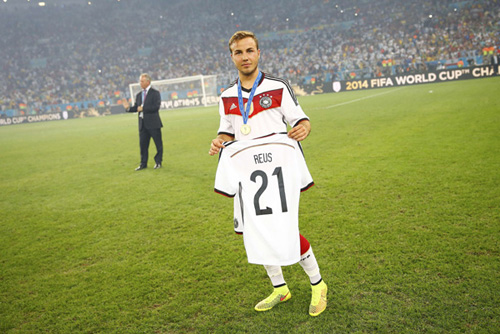 Le joueur allemand Mario Goetze porte le maillot de son compatriote blessé Marco Reus