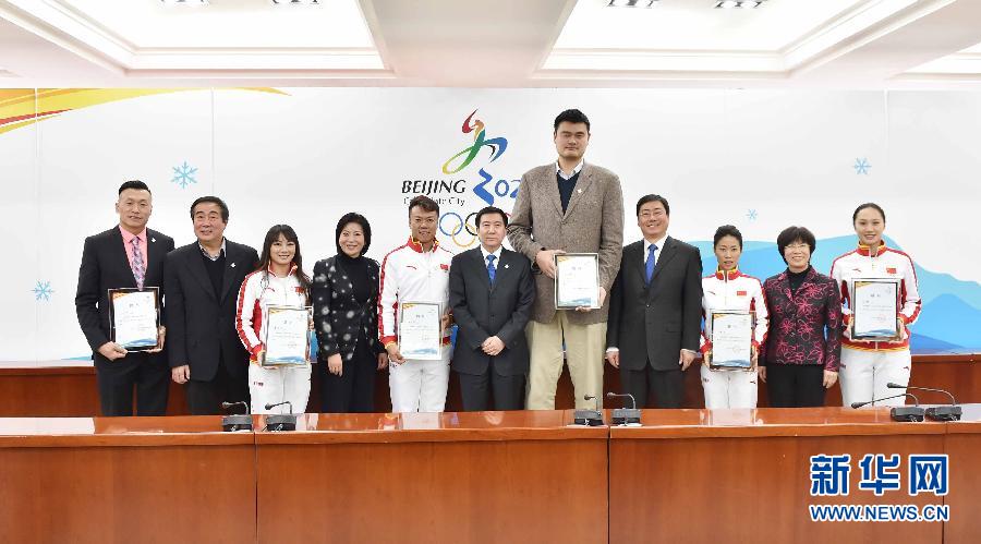 Le 10 février, six athlètes chinois de légende, à savoir Yao Ming, Shen Xue, Zhao Hongbo, Zhang Hong, Li Nina et Hou Bin, sont officiellement devenus ambassadeurs de la candidature de Beijing à l'organisation des Jeux olympiques d'hiver 2022. Ils mettront à profit leur réputation internationale pour faire la promotion de la candidature chinoise et des deux villes en lice pour l'organisation des JO d'hiver : Beijing et Zhangjiakou.