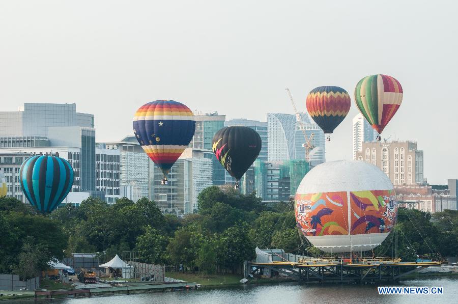 Photo prise le 12 mars 2015 lors duFestival de montgolfières de Putrajaya en Malaisie (Xinhua/Chong Voon Chung)