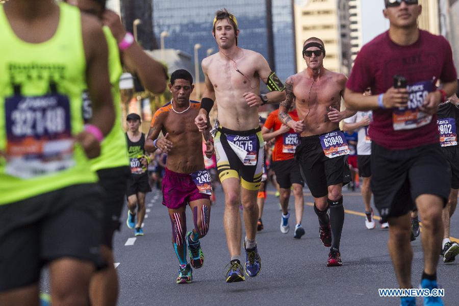 Photo prise le 15 mars 2015 montrant des coureurs lors de la 30e édition du Marathon de Los Angeles, aux Etats-Unis