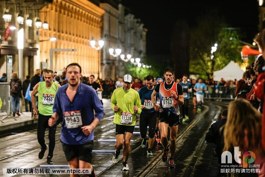 La première édition du marathon de Bordeaux Métropole se déroule de nuit et sous la pluie à Bordeaux en France, le 18 avril 2015. (Photo: ntp/MAXPPP/IP3 PRESS/Thibaud MORITZ)