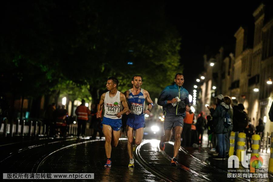 La première édition du marathon de Bordeaux Métropole se déroule de nuit et sous la pluie à Bordeaux en France, le 18 avril 2015. (Photo: ntp/MAXPPP/IP3 PRESS/Thibaud MORITZ)