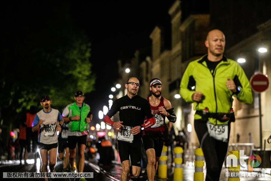 La première édition du marathon de Bordeaux Métropole se déroule de nuit et sous la pluie à Bordeaux en France, le 18 avril 2015. (Photo: ntp/MAXPPP/IP3 PRESS/Thibaud MORITZ)