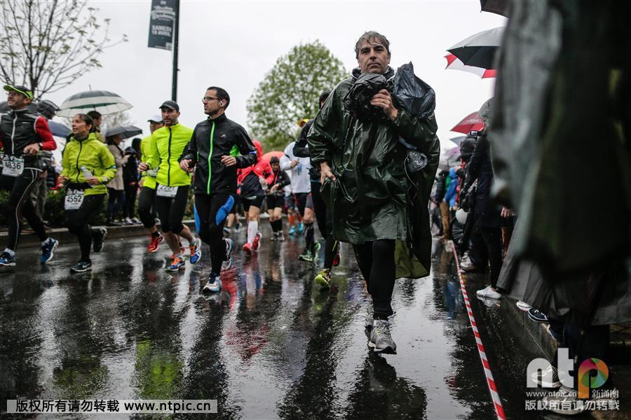 La première édition du marathon de Bordeaux Métropole se déroule de nuit et sous la pluie à Bordeaux en France, le 18 avril 2015. (Photo: ntp/MAXPPP/IP3 PRESS/Thibaud MORITZ)