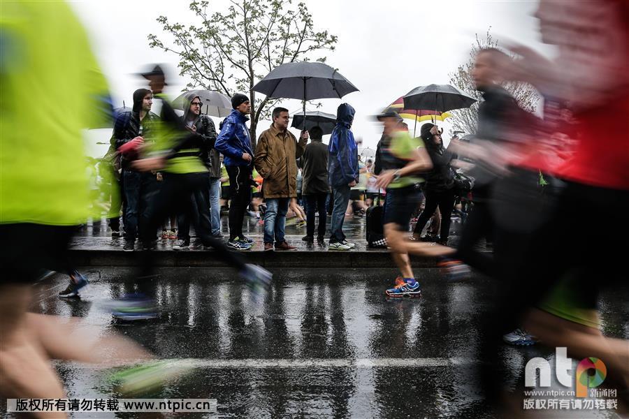 La première édition du marathon de Bordeaux Métropole se déroule de nuit et sous la pluie à Bordeaux en France, le 18 avril 2015. (Photo: ntp/MAXPPP/IP3 PRESS/Thibaud MORITZ)