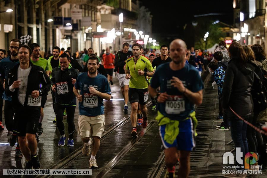 La première édition du marathon de Bordeaux Métropole se déroule de nuit et sous la pluie à Bordeaux en France, le 18 avril 2015. (Photo: ntp/MAXPPP/IP3 PRESS/Thibaud MORITZ)
