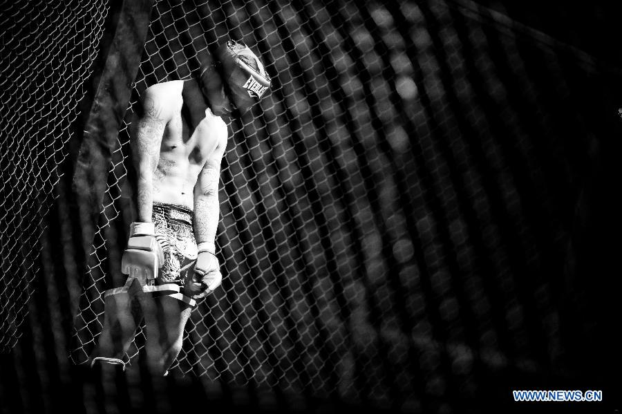 Un boxeur participe à un événement d'arts martiaux mélangés à Bogota, en Colombie, le 26 avril 2015. (Xinhua/Jhon Paz)