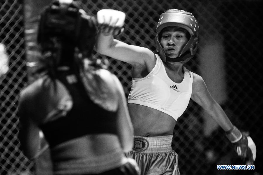 Les gens participent à un événement d'arts martiaux mélangés à Bogota, en Colombie, le 26 avril 2015. (Xinhua/Jhon Paz)