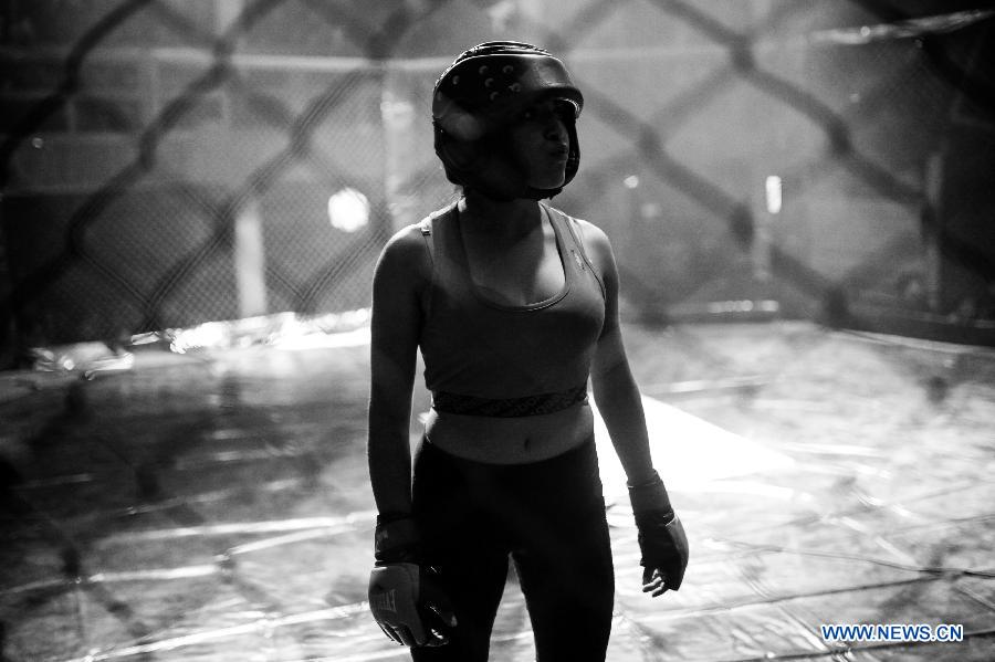 Une boxeuse participe à un événement d'arts martiaux mélangés à Bogota, en Colombie, le 26 avril 2015. (Xinhua/Jhon Paz)