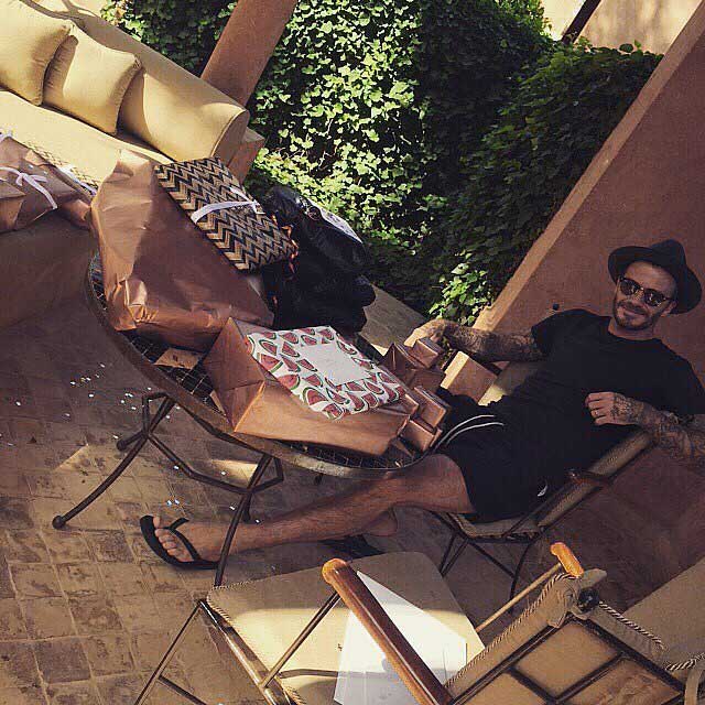 David Beckham prêt à ouvrir ses cadeaux. (Source : Instagram)