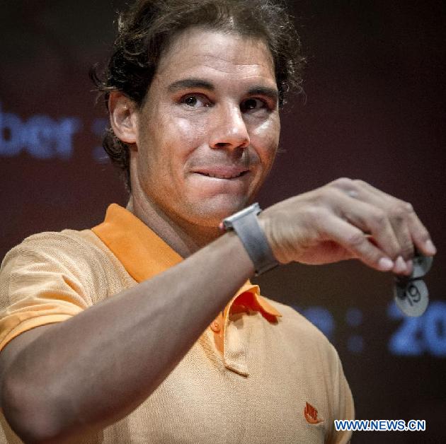 | Le joueur de tennis espagnol Rafael Nadal assiste vendredi au tirage au sort de Roland-Garros 2015, qui débutera dimanche à Paris. (Xinhua/Chen Xiaowei) |