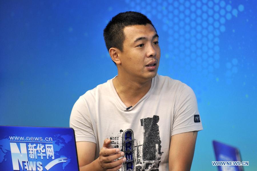 Le footballeur Xu Liang accorde une interview exclusive à Xinhuanet, le 10 ao?t 2015. (Xinhua/Gao Jianjun)
