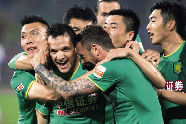 Le 1er mai 2015, le joueur argentin Pablo Batalla avec ses camarades de l'équipe Beijing Guo'an.