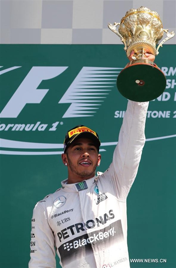 Lewis Hamilton, pilote automobile britannique,. Le 25 octobre, à l'issue de sa victoire au Grand Prix des états-Unis, il est sacré champion du monde pour la troisième fois de sa carrière. (Xinhua/Han Yan)