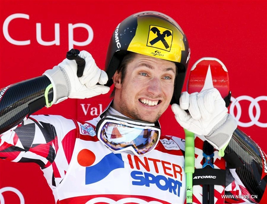 Marcel Hirscher, skieur alpin autrichien. Il est devenu le premier skieur à remporter quatre ? gros ? globes de cristal consécutifs, en 2015.