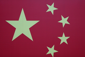 Le drapeau chinois est composé d'une grande étoile, représentant le Parti communiste, avec à sa droite quatre petites étoiles pointées vers le centre de la plus grande (détail)
