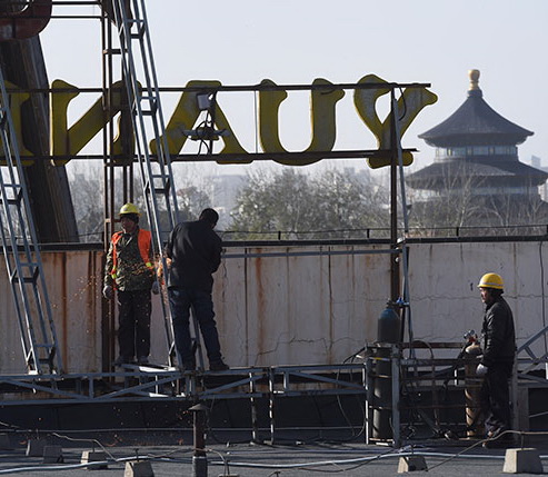 Bien que la plupart des sites des Jeux Olympiques d'été de Beijing de 2008 soient au ralenti en hiver, à l'extrémité Nord du Parc olympique, un chantier de construction est actuellement très animé ; on y voit des ouvriers et des machines en train de préparer un grand site pour la nouvelle piste nationale de patinage de vitesse, un lieu permanent qui sera utilisé pour les Jeux d'hiver de 2022.
