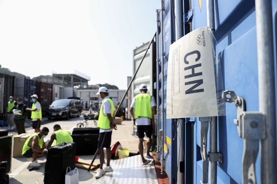 Des membres de l'équipe chinoise de voile vus sur le site de compétition dans le comté de Kanagawa, au Japon, le 11 juillet 2021. (Photo / Xinhua)