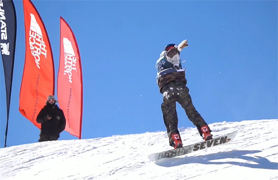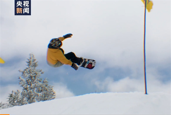 Zhang Jiahao fait du snowboard. (Photo / Capture d'écran sur CGTN)