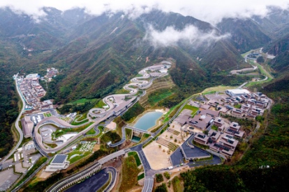 Le village olympique d'hiver de Yanqing est situé au pied du mont Xiaohaituo, dans le canton de Zhangshanying du district de Yanqing, à Beijing, à c?té du Centre national de motoneige et de luge et du Centre d'information sur la montagne. (Wang Zirui/Pic.people.com.cn)