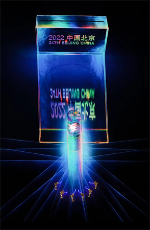 24 blocs de glace sculptés au laser représentant les 24e Jeux olympiques d'hiver sont apparus successivement dans les villes h?tes des 23 derniers Jeux olympiques d'hiver, avant de s'installer finalement sous le nom ? Beijing 2022, Chine ?.