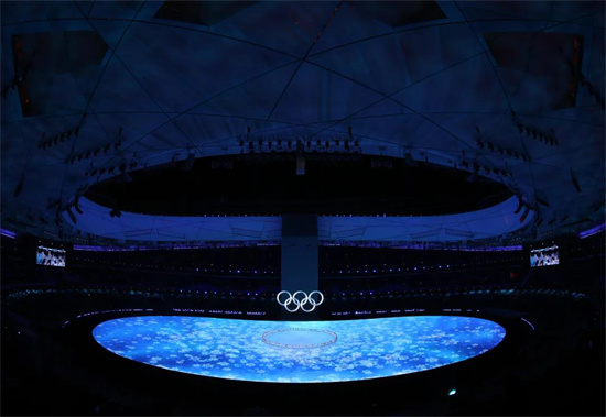 A la suite d'un compte à rebours sur le thème des 24 termes solaires du calendrier traditionnel chinois, les cinq anneaux olympiques ont traversé la glace, la torche principale est allumée. Ces moments de la cérémonie d'ouverture ? ont dédié la romance du peuple chinois au monde entier ?.