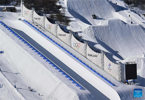 Photo prise le 28 janvier 2022 montrant le site de half-pipe du Parc à neige Genting dans le district de Chongli à Zhangjiakou, dans la province du Hebei (nord de la Chine). (Yang Shiyao/Xinhua)