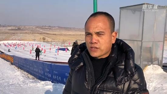 Li Guofu, un agriculteur du village de Beisanjiazi, dans la province du Jilin (nord-est de la Chine), parle du domaine skiable qu'il exploite depuis plusieurs années. (Capture d'écran / Xinhua)
