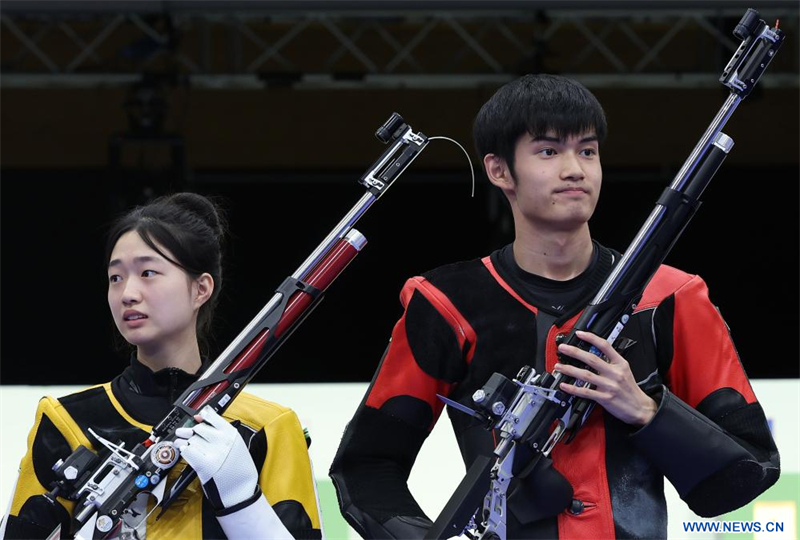 Les champions du monde de tir Huang Yuting et Sheng Lihao ont offert un bon départ à la campagne de la Chine pour les Jeux olympiques de Paris, en remportant la première médaille d'or dans le de tir à la carabine à 10 mètres mixte, samedi à Chateauroux, dans le centre de la France.