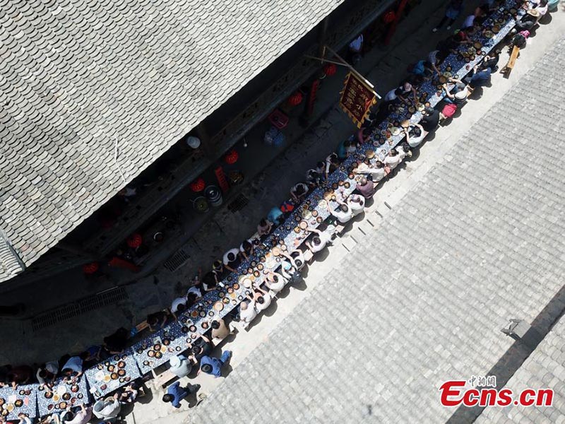 Organisation d'un banquet sur table longue dans le centre de la Chine