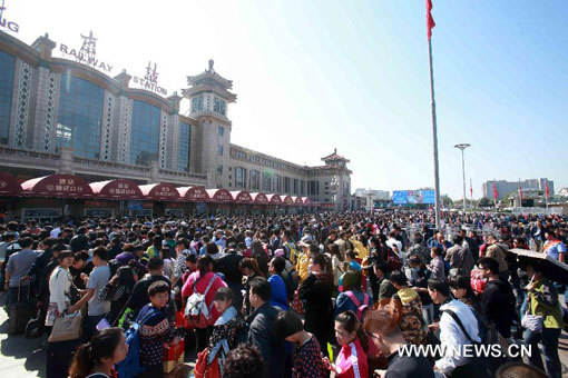 Durant les vacances, nombre de Chinois retournent dans leurs régions natales pour retrouver leurs familles ou visitent des sites touristiques. Les trains sont le principal moyen de transport utilisé dans le pays pour traverser de longues distances, tandis que les voies routières et fluviales sont principalement utilisées pour de courtes distances.