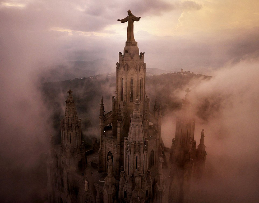 Temps nuageux autour des piliers de l'Eglise du Sacré-C?ur à Barcelone