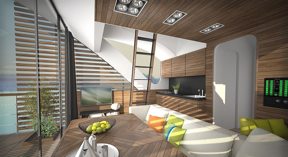 Chaque chambre catamaran est composée d'une salle de réception, d'une cuisine, d'une salle de bains, d'une chambre et d'un espace de stockage.