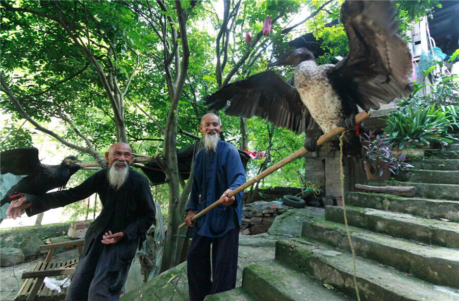 Les frères forment leur cormoran à poser et communiquer avec les autres. [Photo / CFP]