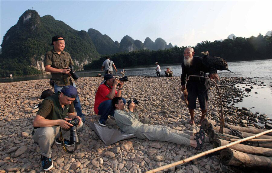 Un groupe de photographes photographie Huang Quande avec enthousiasme, tandis que certains restent debout, d'autres assis, et que d'autres encore même se couchent sur le sol. [Photo / CFP]
