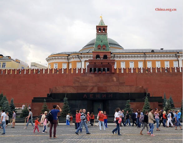 Le mausolée de Lénine sur la place Rouge, dans lequel repose Vladimir Lénine.