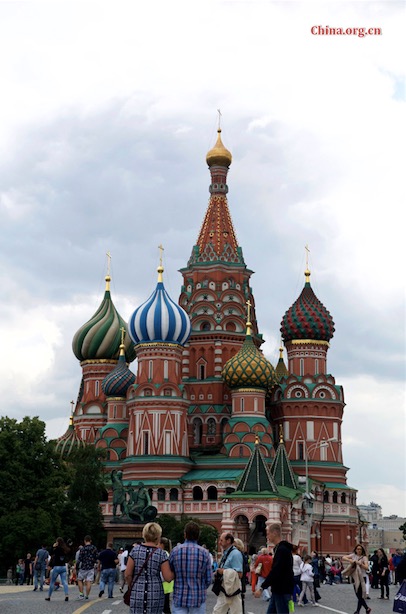 La cathédrale Saint-Basile, ou cathédrale de Vassili-le-Bienheureux, sur la place Rouge à Moscou.