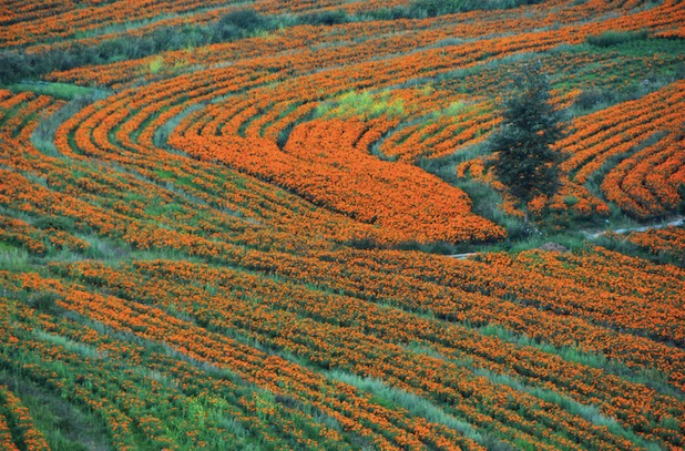 Il y a 23 mu (1,533 hectares) de champs de soucis dans le district de Weining. (Photo : Yang Wenbin)