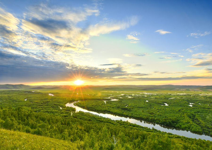 La rivière Argoun court le long de la frontière entre la Chine et la Russie, dans la Région autonome de Mongolie intérieure, dans le nord de la Chine, et elle alimente de nombreuses zones humides dans la région. Abritant de nombreux animaux sauvages et une flore abondante, les zones humides servent de conditionneur à l'écosystème naturel local.