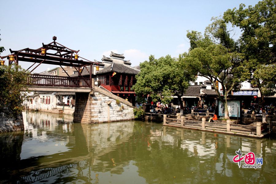 Le bourg ancien de Tongli est à une heure de route de Shanghai. Ayant une histoire plus que millénaire, le bourg se caractérise par des ponts en pierre et des architectures anciennes bien conservées. Ces dernières comprennent des temples, des maisons et des jardins privés. Comme il y a beaucoup de petits cours d'eau qui sillonnent la ville, les ponts jouent un r?le important à Tongli. Parmi les 49 ponts, les trois plus célèbres sont les ponts Taiping (de la paix), Jili (de la chance) et Changqing (de la célébration). Les habitants les considèrent comme de l'architecture sacrée.