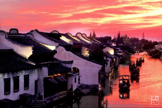 Vue nocturne de Wuzhen, la ville d’eau qui sera l'h?te de la deuxième Conférence mondiale de l'Internet dans la province du Zhejiang (est de la Chine), le 7 décembre 2015. [Photo/Xinhua]