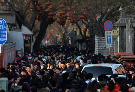 Nanluoguxiang, un hutong –les célèbres vieilles ruelles de la capitale chinoise- situé dans l'Est de Beijing, et qui est une attraction touristique populaire, a re?u plus de 100 000 visiteurs par jour pendant les derniers congés.