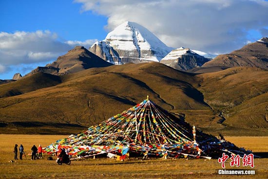 Le mont Kailash est situé dans le comté de Burang, dans la région autonome du Tibet (sud-ouest de la Chine), et culmine à une altitude de 6 656 mètres. Le mont Kailash, dont le sommet est couvert de neige toute l'année, signifie ? le trésor de la montagne de neige ?. Ses quatre parois sont très symétriques, lui donnant l'apparence d'une pyramide. En été, il est souvent entouré de nuages et de brouillard. C'est un lieu idéal pour de nombreux touristes.