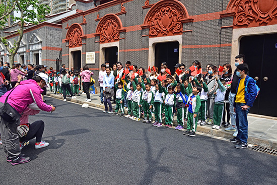 Les visiteurs prennent des photos devant le site du premier Congrès national du Parti communiste chinois et et de son mémorial à Shanghai le 28 avril. (Shui Zhaoyue /China Daily)