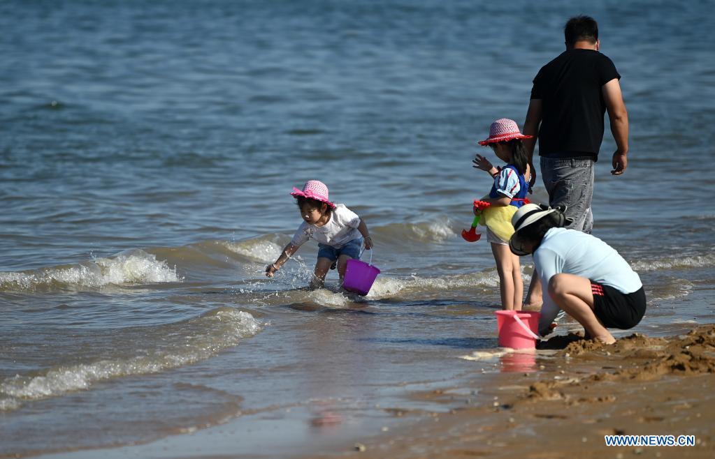Des enfants et leurs parents ramassent des coquillages dans le port de Dongjiang de la municipalité autonome Tianjin (nord-est de la Chine), le 5 juin 2021. (Photo / Xinhua)