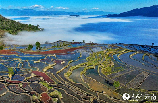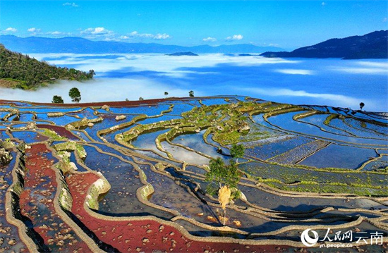 Récemment, les champs en terrasses de Samaba du comté de Honghe, dans la préfecture autonome Hani et Yi de Honghe, dans la province du Yunnan (sud-ouest de la Chine), ont été entièrement irrigués, et sont entrés dans la meilleure saison pour les découvrir.