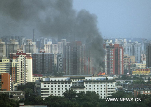 Un batiment dans la partie sud du centre-ville de Beijing a pris feu jeudi.