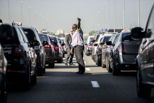 Uber Technologies Inc., la société de services de taxis qui compte de très nombreuses voitures avec chauffeur à travers les états-Unis, fait face à la plus grande manifestation des conducteurs professionnels européens qu'elle ait jamais connue ; selon eux l'application sur smartphone menace en effet leurs moyens de subsistance.