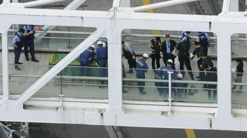 Des témoins ont signalé que le drame est arrivé après que l'homme ait grimpé sur le cadre métallique au-dessus d'une passerelle avant de prononcer un discours avec un mégaphone, s'opposant aux décisions du gouvernement visant à étendre les conditions d’utilisation de l'armée japonaise. Sur les médias sociaux, des vidéos et des images ont montré l'homme, vêtu d'un costume sombre et d’une cravate, avec deux bouteilles en plastique à c?té de lui.